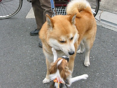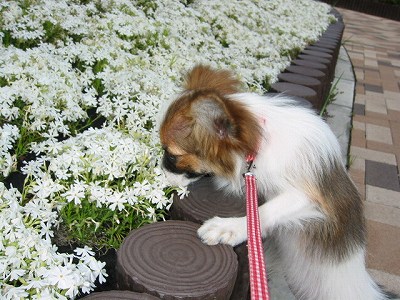 今日は、昼間は風が強くてお散歩が大変でした。 風だけならいいのですが、さくらは風に舞う葉が気になって、 なかなかまっすぐ歩けなかったのです(>_<) 目の前を葉が舞うと、それにじゃれつき・・・まるでその姿は猫! その上、いつものコースの途中でフリマーケットが開催されて いたりして、あまり歩かずに昼間のお散歩は終わりました。
