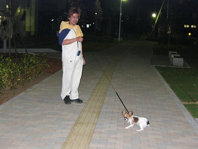 夕飯を食べた後、主人がやり残した仕事を思い出したので、 急遽お店までお散歩することにしました。 初めて通る道で、さくらは、あちこち匂いを嗅ぎながらのお散歩でした。 昼間いっぱい歩けなかったし、さくらにとってはちょうど良かったのかな(^-^* このところ昼間は結構暑いし、時々は夜のお散歩もいいかもね。